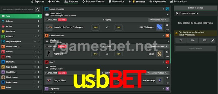O usbbet oferece uma grande seleção de opções de apostas em e-sports com probabilidades competitivas